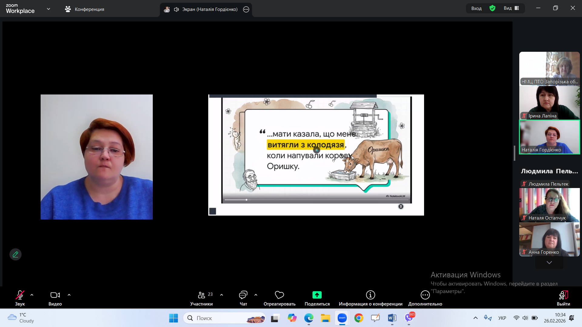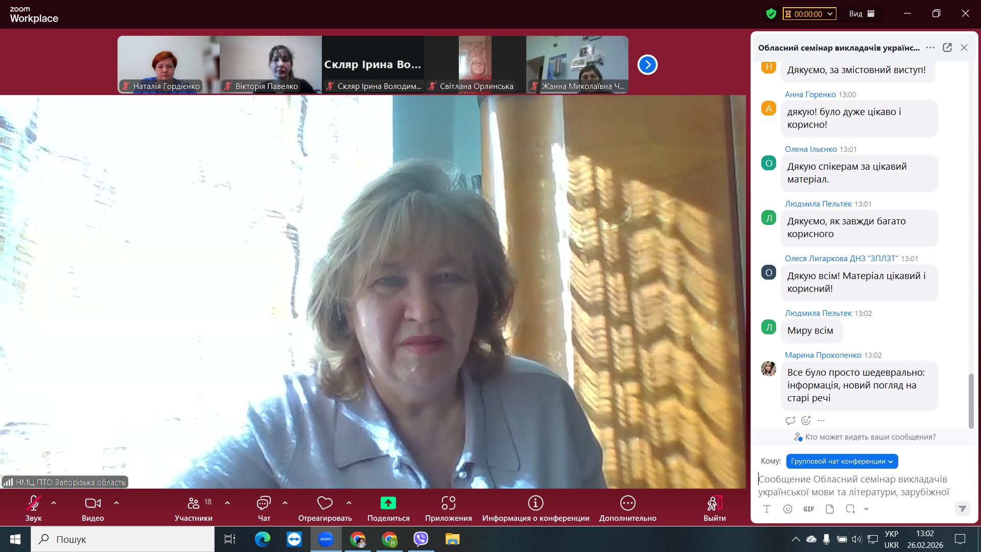 26 лютого 2026 року на платформі Zoom відбувся обласний семінар викладачів української мови та літератури, зарубіжної літератури на тему «Актуальні питання ефективної організації освітнього процесу з української мови та літератури, зарубіжної літератури в умовах сучасних викликів». Головна мета заходу – розвиток професійної компетентності викладачів-філологів, вдосконалення педагогічної майстерності. На початку семінару виступила методист Науково-методичного центру професійно-технічної освіти у Запорізькій області Лілія Четверякова, яка відзначила, що ефективна організація освітнього процесу з української мови і літератури та зарубіжної літератури в закладах професійної освіти в умовах сучасних викликів потребує гнучкості, інноваційності та глибокого розуміння потреб молоді.