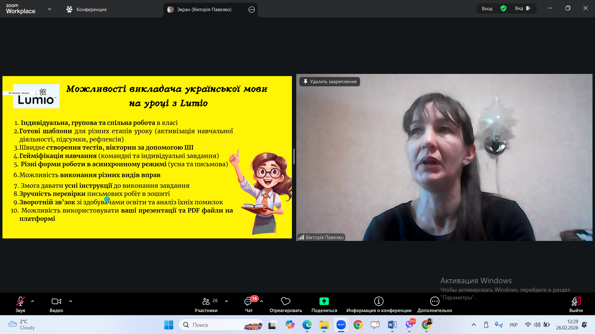 З доповіддю на тему «Освітня платформа Lumio як засіб подолання освітніх викликів умовах дистанційного навчання» виступила Вікторія Павелко, викладач української мови та літератури Федорівського центру професійної освіти. Використання електронних навчальних ресурсів при вивченні української мови та літератури стало необхідністю в умовах сьогодення. Без можливостей, які вони надають, вже неможливо провести ефективний урок і формувати компетентності, якими має володіти сучасна людина ХXI сторіччя.