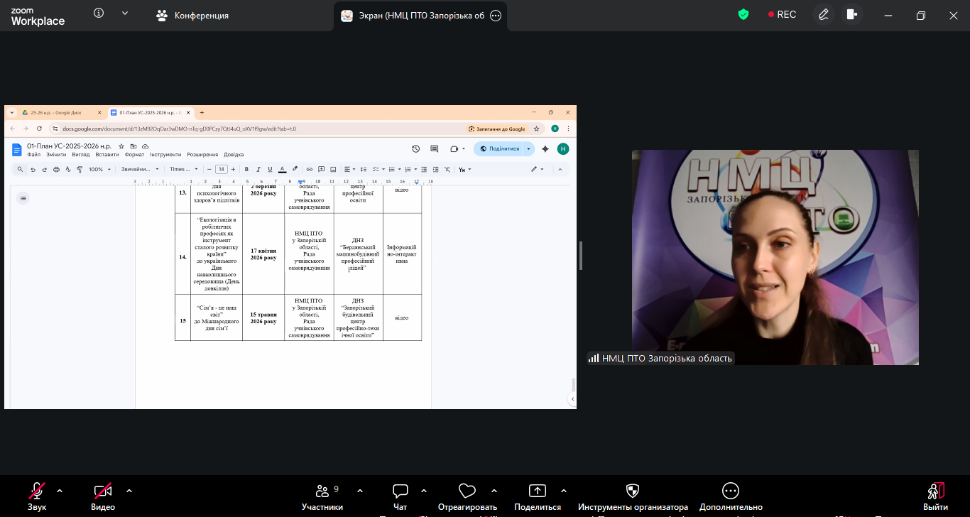 01 квітня 2026 року Науково-методичним центром професійно-технічної освіти у Запорізькій області на платформі Zoom було організовано та проведено  відеоконференцію з членами ради студентського самоврядування закладів професійної освіти Запорізької області.