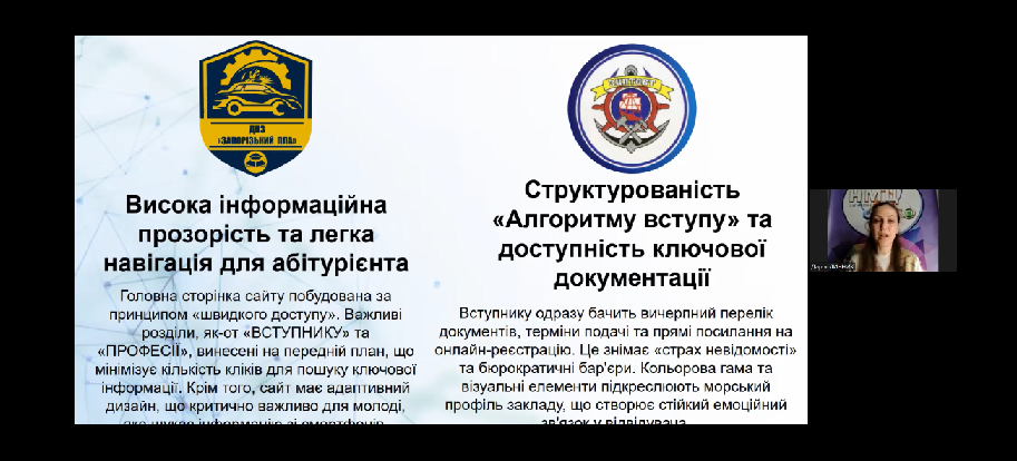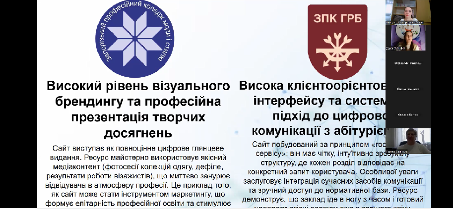 Свою експертну оцінку надала ескперт, методист Науково-методичного центру професійно-технічної освіти у Запорізькій області Дар’я ЛИННИК. Вона висвітлила сильні сторони та типові недоліки на її думку по кожному закладу освіти.