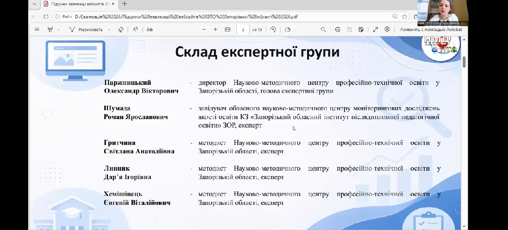 Саме тому, 27 квітня 2026 року, Науково-методичним центром професійно-технічної освіти у Запорізькій області було проведено підсумки евалюації вебсайтів «Евалюація вебсайтів закладів професійної освіти».