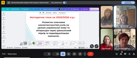 В умовах війни зазнала змін не тільки освітня галузь, а й організація роботи з педагогічними працівниками, інформаційна, методична, психологічна підтримка педагогів, тому продовжують роботу експертні творчі групи області. 23 вересня 2025 року відбулося перше в поточному навчальному році засідання експертної