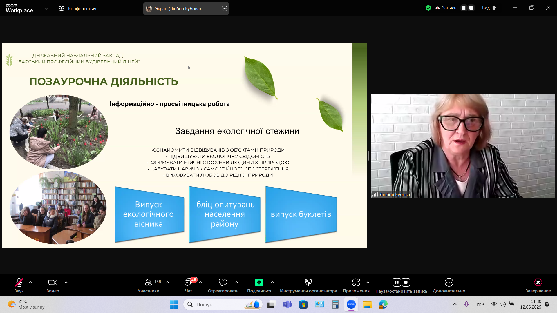12 червня 2025 року успішно відбулась IV Всеукраїнська науково-практична конференція «Охорона довкілля, використання природних ресурсів та забезпечення екологічної безпеки», яка проходила в онлайн-форматі на платформі ZOOM, що дозволило учасникам долучитися з різних регіонів країни.